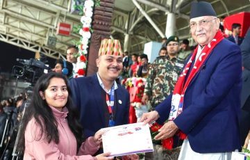 काठमाडौं, २२ फागुन : राष्ट्रिय युवा सङ्घ नेपाल शिक्षा विभागले जीवनका लागि खेलकुद शीर्षकमा आयोजना गरेएको राष्ट्रव्यापी खुल्ला निबन्ध लेखन प्रतियोगिताका विजेताहरूलाई पुरस्कृत गरिएको छ । प्रधानमन्त्री एवम् नेकपा (एमाले)…