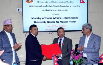 काठमाडौँ, ८ पुस : गृह मन्त्रालय र काठमाडौँ विश्वविद्यालय (केयू)को मानसिक स्वास्थ्य विभागबीच मानसिक स्वास्थ्य अध्ययन–अनुसन्धानका लागि समझदारीपत्रमा हस्ताक्षर भएको छ । गृह मन्त्रालयका विपद् महाशाखा प्रमुख डा टोकराज पाण्डे…