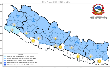 आज कोशी, बागमती र गण्डकी प्रदेशमा वर्षा–हिमपातको सम्भावना