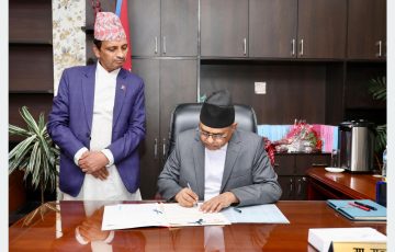 काठमाडौँ, ७ असोज : अर्थमन्त्री रामेश्वरप्रसाद खनालले सङ्घीय मामिला तथा सामान्य प्रशासन मन्त्रालयमा पदबहाली गर्नुभएको छ । मन्त्रिपरिषद्को सोमबारको कार्यविभाजनअनुसार उहाँलाई सामान्य प्रशासन मन्त्रालयको पनि कार्यभार थप गरिएको छ ।…