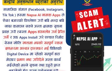 काठमाडौँ, २७ साउन : नेपाल प्रहरी प्रधान कार्यालय केन्द्रीय अनुसन्धान ब्युरोले कुनै पनि अपरिचित लिङ्क तथा एप डाउनलोड तथा इन्स्टल नगर्न अनुरोध गरेको छ । ब्युरोका सूचना अधिकारी प्रहरी उपरीक्षक…