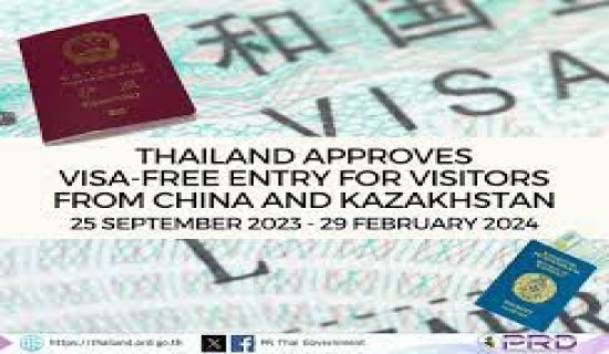 बैंकक, १४ माघ : चिनियाँ विदेशमन्त्री वाङ यीले चीन र थाइल्याण्डले आधिकारिकरूपमा मार्च १ देखि ‘भिसामुक्त युग’ मा प्रवेश गर्ने बताउनु भएको छ । दुई पक्षले एकअर्काका नागरिकलाई भिसा छुट दिनेसम्बन्धी सम्झौतामा हस्ताक्षर गरेका छन् ।
