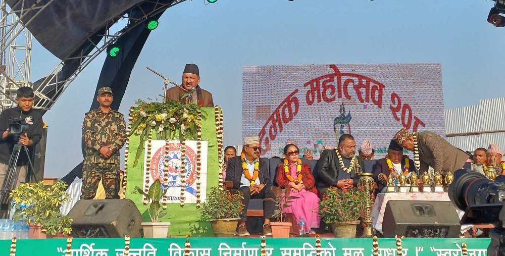 दमक उद्योग वाणिज्य सङ्घले आजदेखि सुरु गरेको १५ दिने पाँचौं दमक महोत्सवको उद्घाटन गर्न झापा आउनु भएका अर्थमन्त्री महतले भन्सारको निरीक्षणसहित व्यवसायीहरुसँग भेटघाट गर्नुभएको हो ।