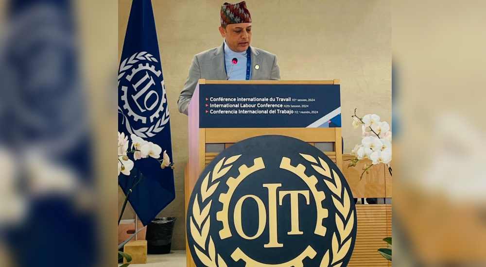 मङ्गलबार जेनेभामा आयोजित ११२औँ अन्तर्राष्ट्रिय श्रम सम्मेलनलाई सम्बोधन गर्दै उहाँले श्रमिकलाई मर्यादित कार्यमा लगाउने कार्यसूची कार्यान्वयन गर्न नेपाल सरकार प्रतिबद्ध रहेको बताउनुभयो ।