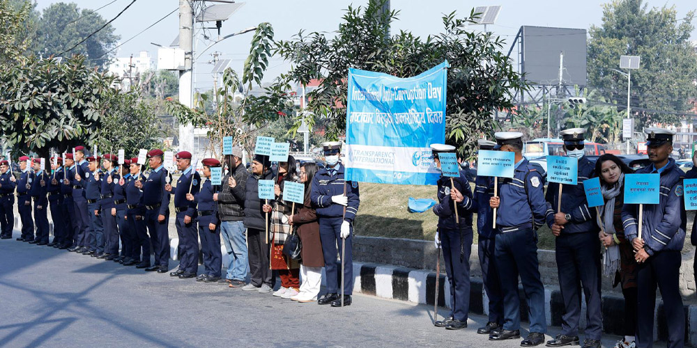 भ्रष्टाचार विरुद्धको अन्तर्राष्ट्रिय दिवस मनाइरहँदा नेपालमा भ्रष्टाचार नियन्त्रण र सुशासन कायमका लागि भएका प्रयास तथा उपलब्धिबारे गम्भीर समीक्षाको खाँचो आँैल्याइएको छ । सोही उपलक्ष्यामा ट्रान्सपरेन्सी इन्टरनेसनललगायत संस्थाको अगुवाइमा काठमाडौँको माइतिघरस्थित सडकमा भ्रष्टाचार विरुद्धको अभियानप्रति ऐक्यबद्धता जाहेर गर्दै आज बिहान १० देखि ११ बजेसम्म एक घण्टा प्रदर्शन गरियो ।