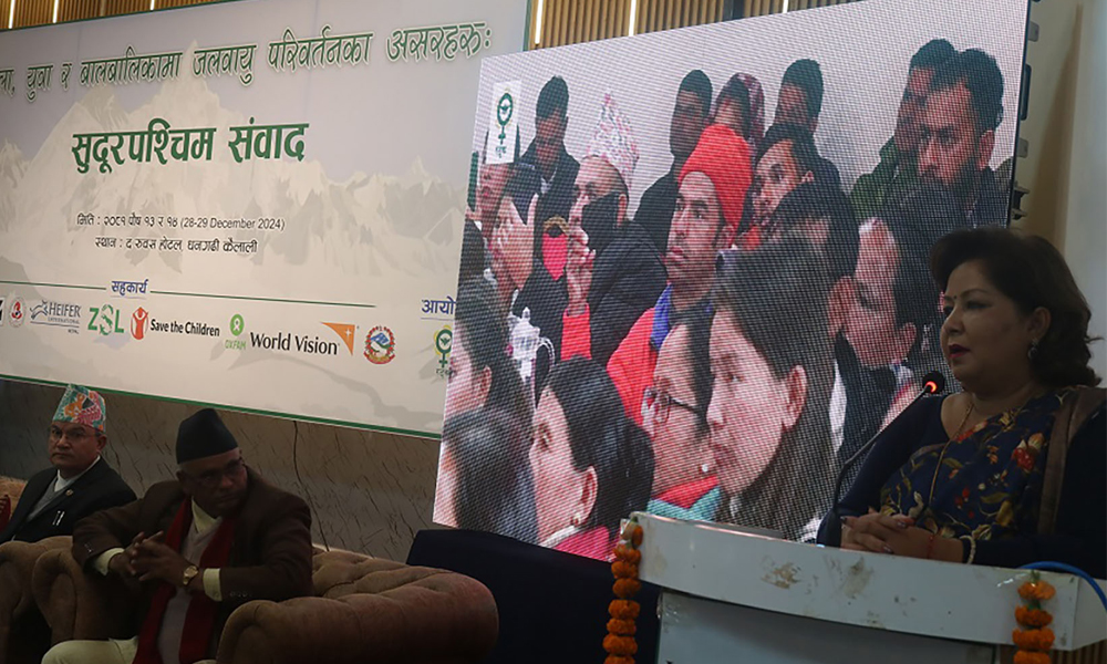सुदूरपश्चिम, १३ पुस : जलवायु परिवर्तनका कारण महिला, बालबालिका र युवामा परेको प्रभावबारे आजदेखि कैलालीको धनगढीमा बृहत् संवाद भएको छ ।