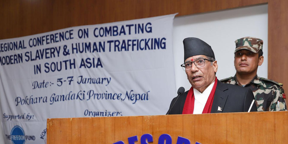 कोपिला नेपालद्वारा आयोजित ‘दक्षिण एशियामा आधुनिक दासत्व र मानव ओसारपसारकाविरुद्ध तीन दिवसीय क्षेत्रीय सम्मेलन’ को आज पोखरामा उद्घाटन गर्दै प्रदेश प्रमुख भट्टले मानव बेचबिखन तथा ओसारपसार एक गम्भीर सामाजिक तथा मानवताविरुद्धको विश्वव्यापी समस्या र नयाँ चुनौतीका रूपमा देखापरेको बताउनुभयो ।