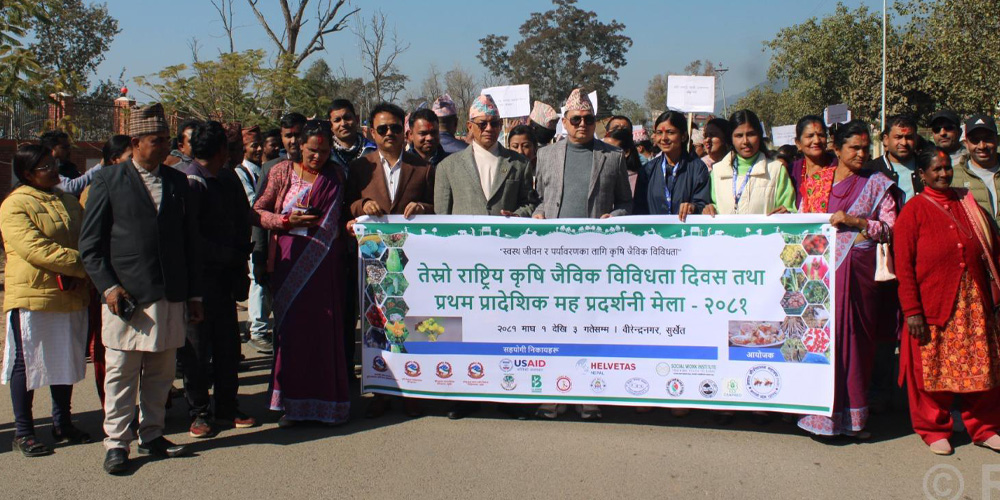 ‘स्वस्थ जीवन र पर्यावरणका लागि कृषि जैविक विविधता’ भन्ने मूल नाराका साथ तेस्रो राष्ट्रिय कृषि जैविक विविधता दिवस तथा प्रथम प्रादेशिक मह प्रदर्शनी मेला नेपाल मौरीपालन कृषक महासङ्घ कर्णाली प्रदेशको आयोजनामा मङ्गलबारदेखि सुरु भएको हो । यही माघ ३ गतेसम्म सञ्चालन हुने प्रादेशिक मह मेलाको शुभारम्भ गर्नुहँदै कर्णाली सरकरका प्रवक्ता एवं भूमि, व्यवस्था, कृषि तथा सहकारीमन्त्री विनोदकुमार शाहले गर्दै उत्पादनका हिसाबले अत्यन्तै पवित्र मानिने मौरीको मह प्रदर्शनी मेलाले कर्णालीको उत्पादन, मूल्य शृङ्खला, महत्व र यसको पहिचान देशविदेशमा पुग्ने बताउनुभयो । उहाँले मह उत्पादक किसानलाई नयाँ–नयाँ प्रविधि, ज्ञान, औजार सहयोग गर्न प्रदेश सरकार प्रतिबद्ध रहेको जनाउनुभयो ।