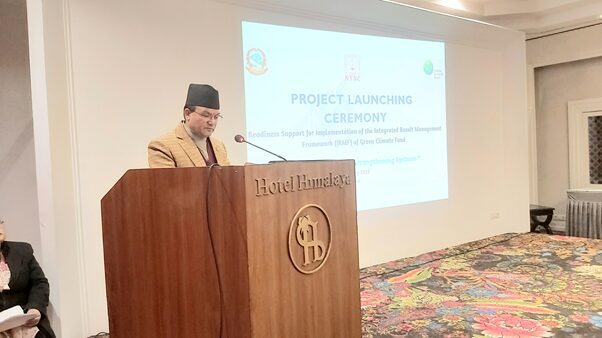 आज यहाँ आयोजित हरित जलवायु कोषको एकीकृत परिणाम व्यवस्थापन रूपरेखाको कार्यान्वयनका लागि ‘क्षमता अभिवृद्धि एवम् सुदृढीकरण प्रणाली’ को शुभारम्भ गर्दै मन्त्री ठकुरीले राष्ट्रिय प्राथमिकतामा आधारित जलवायु परियोजनाहरूले जलवायु जोखिमविरुद्ध नेपालको अनुकूलन क्षमता अभिवृद्धि गर्ने बताउनुभयो ।