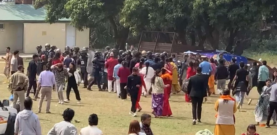 लेखनाथ, २३ फागुन : पोखरा महानगरपालिकाको पर्यटकीय केन्द्र लेकसाइडमा गर्न लागिएको कोटिहोमको भूमिपूजनमा शुक्रबार झडप हुँदा १३ जना घाइते भएका छन् । कोटिहोम गर्ने पक्ष र नगर प्रहरीबिच बिहान १०ः३० बजेतिर झडप भएको हो ।