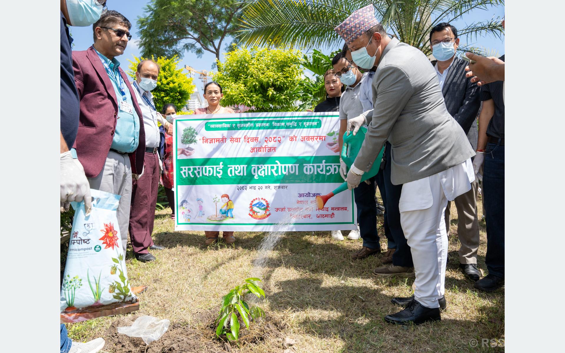 मन्त्रालयले आज बिहान आयोजना गरेको कार्यक्रममा ऊर्जा, जलस्रोत तथा सिँचाइमन्त्री दीपक खड्काले वृक्षरोपण गरेर कार्यक्रमको शुभारम्भ गर्नुभएको हो ।