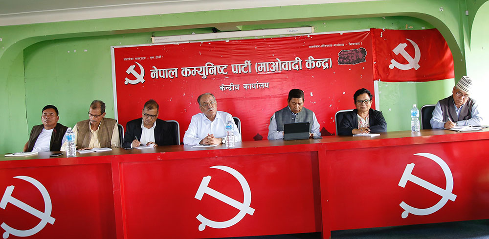 बैठकमा अध्यक्ष दाहालले वर्तमान परिस्थितिबारे ‘ब्रिफिङ’ गर्दै पार्टी नयाँ स्वरुपबाट अघि बढ्नुपर्ने प्रस्ताव राख्नुभएको थियो । अध्यक्षको प्रस्तावमाथि सबै पदाधिकारीले धारणा व्यक्त गर्नुभएको थियो ।