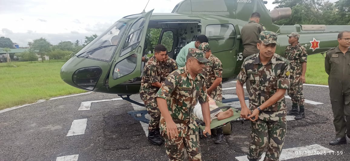 काठमाडौँ, १९ असोज : असोज १७ गते बेलुकीदेखि परेको अविरल वर्षाका कारण देशका विभिन्न स्थानमा फसेका नागरिकलाई नेपाली सेनाले उद्धार गरेको छ ।