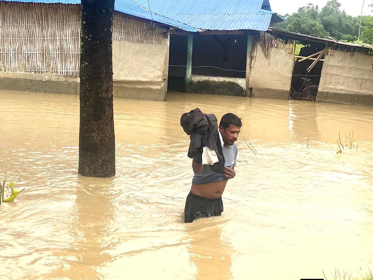 अविरल पानी परेसँगै बागमती, लालबकैया, झाझसहितका नदीमा आएको बाढीका कारण आसपासका अधिकांश भूभाग डुबानमा परेका छन् ।