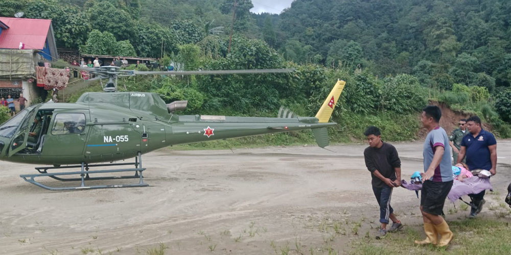 सेनाको हेलिकाेप्टरबाट चार जना गर्भवतीकाे उद्धार