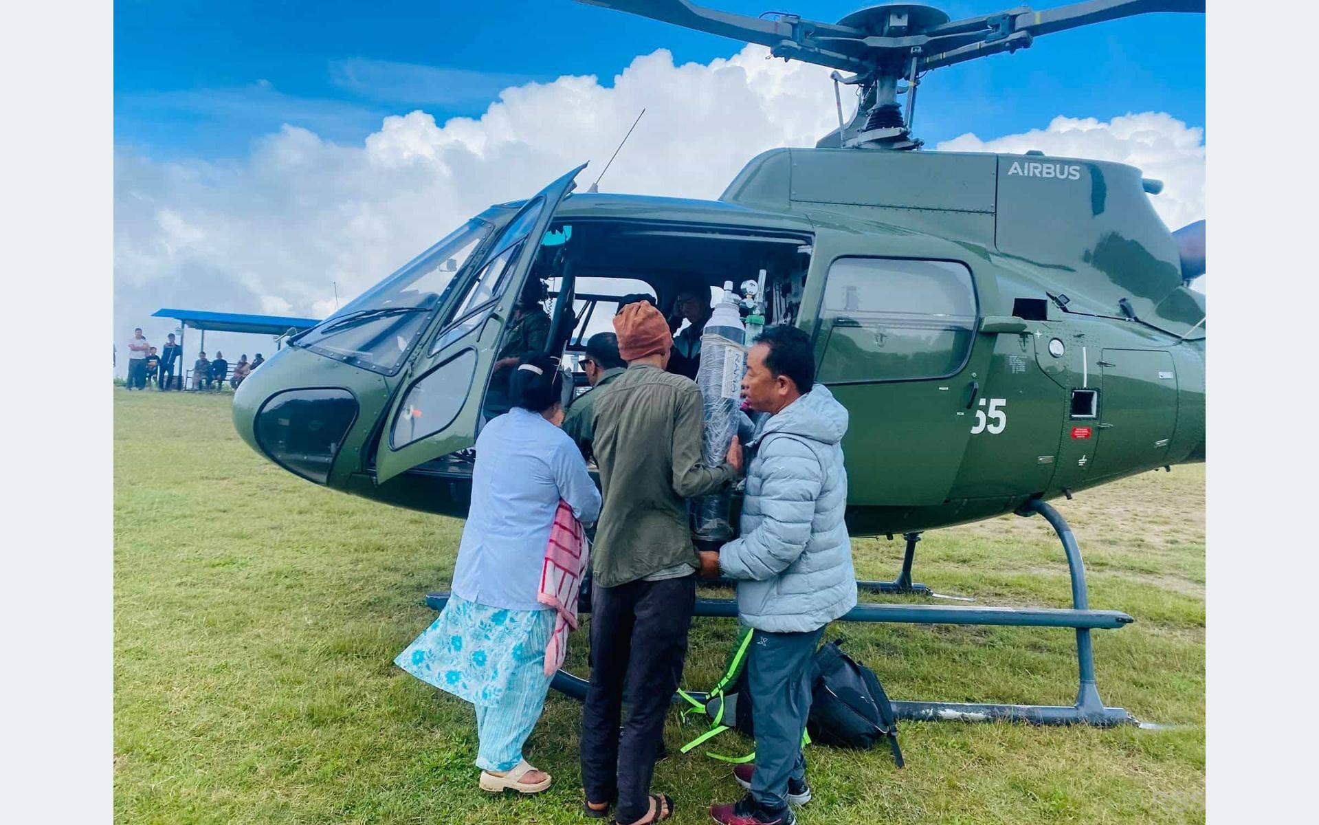 टक्सार (भोजपुर), २१ असोज : भोजपुरको रामप्रसाद राई गाउँपालिका–४ बाट सुत्केरी र शिशुको उद्धार गरिएको छ । स्थानीय ३९ वर्षीया निर्मला राई र उनको शिशुको आज नेपाली सेनाको हेलिकप्टरमार्फत् उद्धार गरिएको हो ।