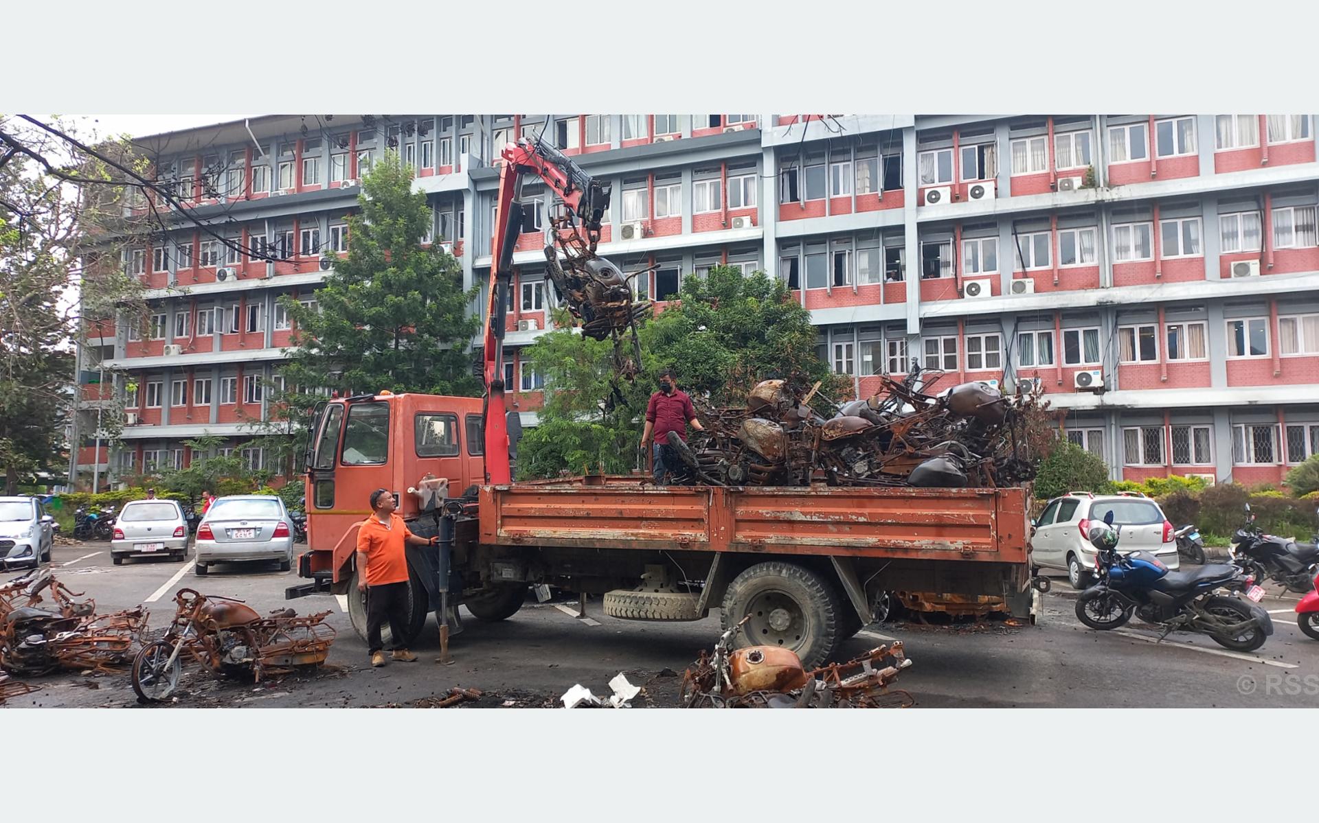 आगजनीमा क्षतिग्रस्त एक हजार सवारीसाधन सडक विभागका चार वटा भारी उपकरण प्रयोग गरेर ती हटाउन थालिएको विभागले जनाएको छ । हालसम्म २०० वटा चारपाङ्ग्रे र ४०० दुईपाङ्ग्रे सवारीसाधन व्यवस्थापन गरिएको छ ।
