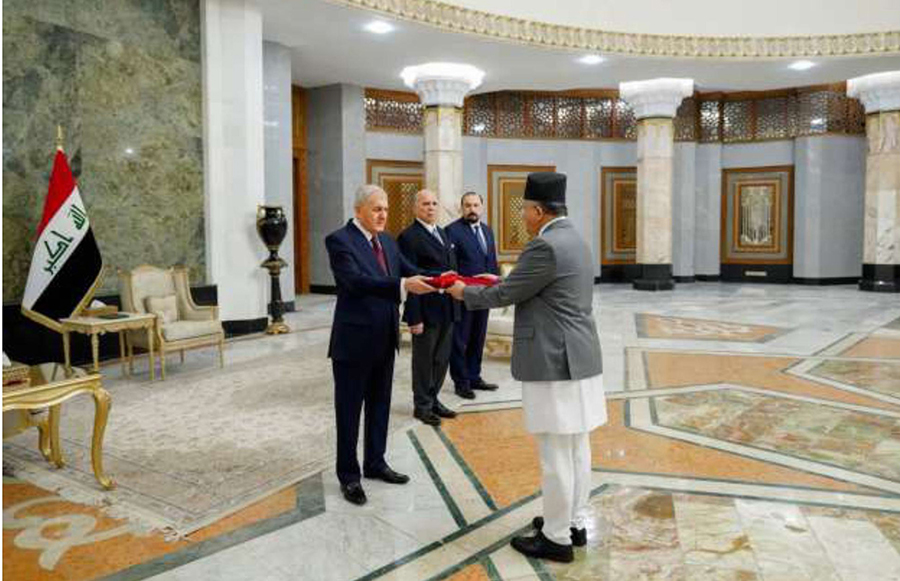 काठमाडौँ, २३ असोज : इराकका लागि नेपालका राजदूत घनश्याम लम्सालले त्यहाँका राष्ट्रपति डा अब्दुल्लातिफ जमाल रसिदसमक्ष बुधबार बग्दादस्थित राष्ट्रपति भवनमा आयोजित विशेष समारोहमा आफ्नो ओहोदाको प्रमाणपत्र प्रस्तुत गर्नुभएको छ ।