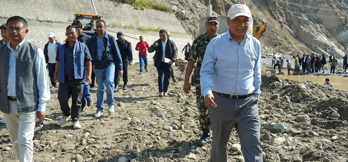 मन्त्री घिसिङद्वारा क्षतिग्रस्त विपी राजमार्ग अवलोकन