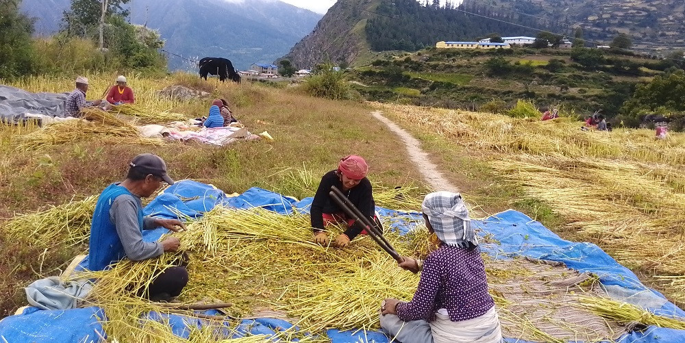 सिमकोट (हुम्ला), २७ असोज : बडादसैँ सकिएसँगै हुम्लाका किसान यतिबेला खेतबारीको काममा व्यस्त देखिएका छन् । किसान यतिबेला खेतमा लगाएको विभिन्न बाली भित्र्याउन थालेका छन् ।