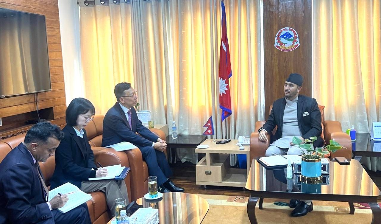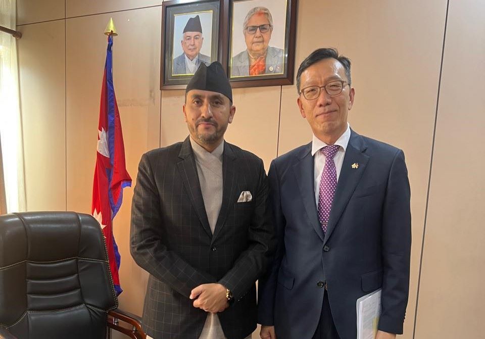 काठमाडौं, १७ कात्तिक : सञ्चार तथा सूचना प्रविधिमन्त्री जगदीश खरेलसँग नेपालका लागि गणतन्त्र कोरिया (दक्षिण कोरिया) का राजदूत पार्क तइ योङले शिष्टाचार भेट गर्नुभएको छ। सिंहदरबारस्थित सञ्चार मन्त्रालयमा भएको भेटमा नेपाल तथा गणतन्त्र दक्षिण कोरियाबिच द्विपक्षीय ऐतिहासिक सम्बन्ध, द्विपक्षीय सहकार्य तथा वर्तमान अवस्था र नेपाल सरकारका प्रथमिकताका सम्बन्धमा छलफल भएको मन्त्रीको सचिवालयले जनाएको छ।