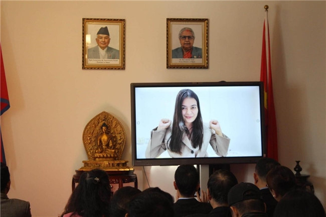पुरस्कार विजेता विद्यार्थीहरूलाई नेतृत्व लिन, आफ्नो प्रयास जारी राख्न, चीनमा आफ्नो अध्ययनको हरेक क्षणको कदर गर्न र विभिन्न क्षेत्रहरूमा चीनको अनुभवलाई आत्मसात गर्न पनि उहाँले प्रोत्साहित गर्नुभयो । उहाँले उनीहरूलाई चिनियाँ अनुभव, समाधान र बुद्धिमत्तालाई एकीकृत गर्न आग्रह गर्दै नेपाल फर्केपछि आफ्नो मातृभूमिको विकासमा लागू गर्न, आफ्नो देशमा योगदान गर्न, आफ्ना आमाबाबुको ऋण चुक्ता गर्न, आफ्नो देशको सेवा गर्न र अन्तर्राष्ट्रिय समुदायमा योगदान गरी साझा भविष्य भएको विश्व समुदायको निर्माता बन्न पनि प्रेरित गर्नुभयो ।