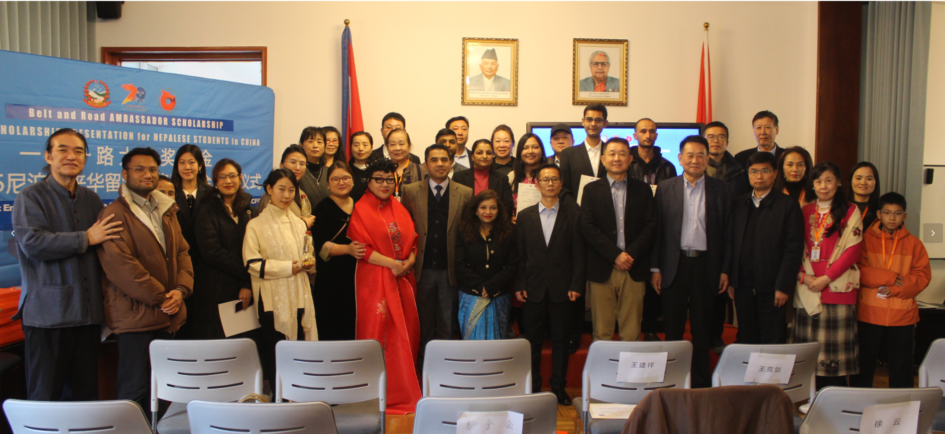 चिनियाँ संस्थाले नेपाली विद्यार्थीका लागि प्रदान गर्ने बेल्ट एण्ड रोड एम्बेसडर छात्रवृत्ति पुरस्कार नोभेम्बर २० तारिख बेइजिङस्थित नेपाली दूतावासमा आयोजना गरिएको छ । चीनमा अध्ययनरत १२ जना नेपाली विद्यार्थीहरूले यो छात्रवृत्ति पाएका छन् ।