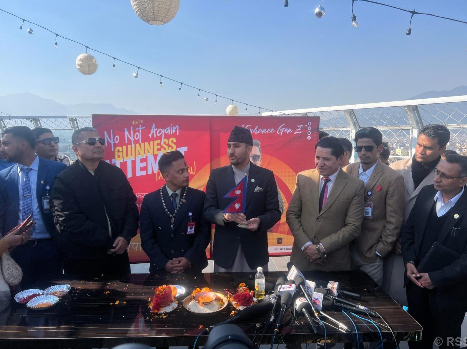 आजदेखि सुरु भएको ‘१०० घण्टा निरन्तर टेलिभिजन संवाद’ (नन–स्टप म्याराथन टिभी टक शो) को उद्घाटन गर्दै उहाँले नेपालीले विभिन्न क्षेत्रमा कायम गरेको विश्व कीर्तिमानले नेपालको पहिचान र स्वाभिमान विश्वभर छाएको बताउनुभयो । युवा पत्रकार गौरव पौडेलले गिनिज बुकमा नाम दर्ज गर्ने उद्देश्यले पहिलो पटक कमलादीस्थित ‘स्काइवाक टावर’ बाट १०० घण्टा लामो संवाद सञ्चालन गर्नुभएको हो ।