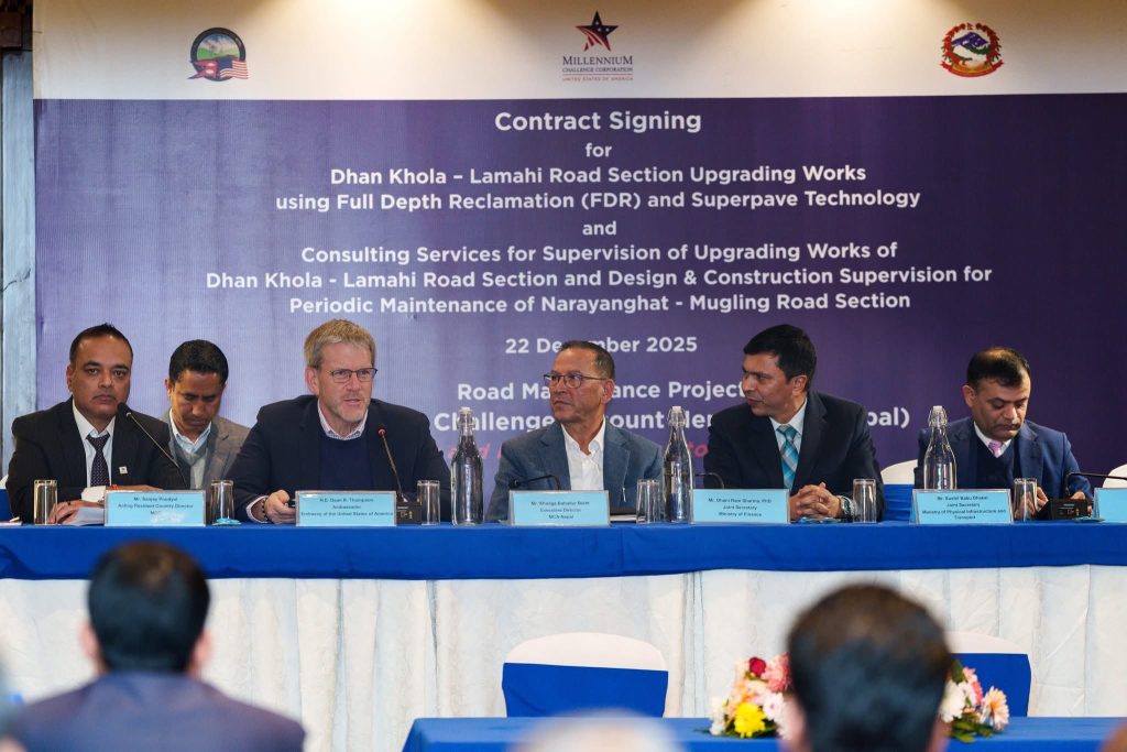 एमसिए-नेपालले आज जारी गरेको प्रेस विज्ञप्तिअनुसार एमसिसी नेपाल कम्प्याक्टअन्तर्गतका सडक मर्मत आयोजना कार्यान्वयनका क्रममा पूर्व-पश्चिम राजमार्गको धानखोलाबाट लमहीसम्मको खण्डको स्तरोन्नतिका लागि शर्मा-कुमार संयुक्त उपक्रमसँग करिब दुई करोड अमेरिकी डलर बराबरको सम्झौता गरेको हो ।