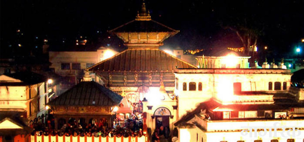 काठमाडौँ, ४ फागुन : जाडो महिना, साँझ परिसकेको छ, चिसो स्याँठले निरन्तर हानिरहेको छ, तर पनि बिजुली बत्तीले झिलिमिली बनेको पशुपति क्षेत्रमा भक्तजनको भीड घट्नुको सट्टा बढिरह्यो ।